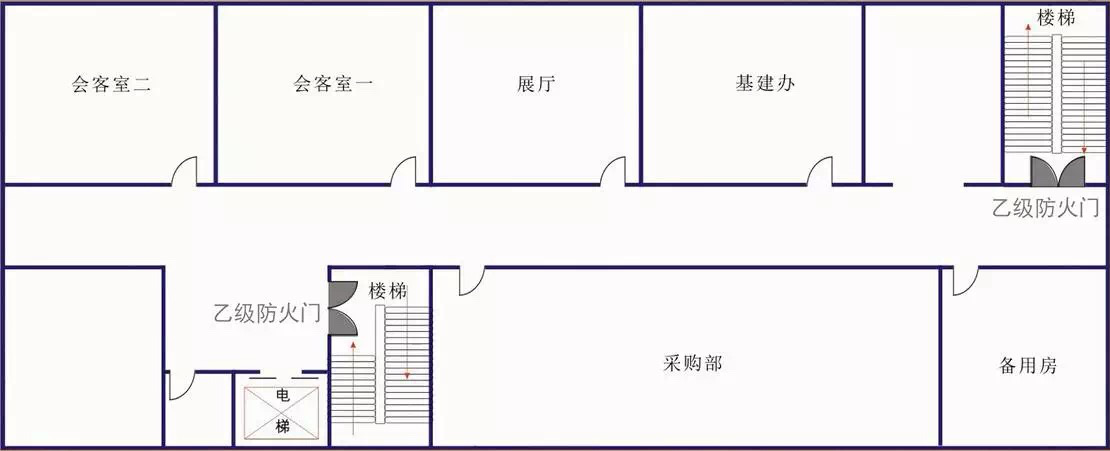 防火分區至避難走道入口處應設置防煙前室,前室的使用面積不應小于6.0㎡,開向前室的門應采用甲級防火門,前室開向避難走道的門應采用乙級防火門。