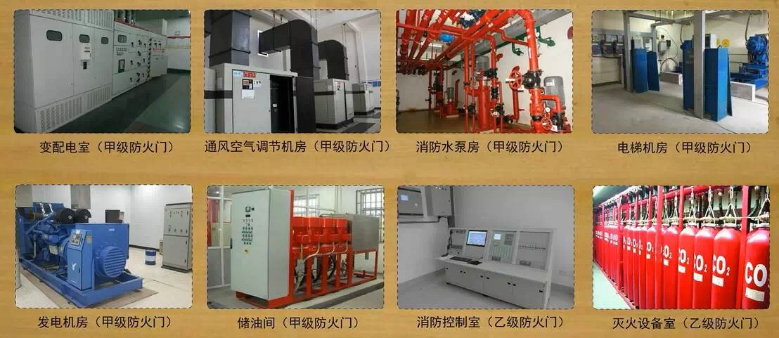 重要設備間需要設置防火門,以保護設備安全,常用的設備間有:變配電室(甲級)、通風空氣調節機房(甲級)、消防水泵房(甲級)、電梯機房(甲級)、(發電機房甲級)、儲油間(甲級)、消防控制室(乙級)、滅火設備室(乙級)。