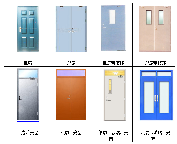 防火門如按結(jié)構(gòu)分類,可分為八類:單扇、雙扇,單扇帶玻璃、雙扇帶玻璃,單扇帶亮窗、雙扇帶亮窗,單扇帶玻璃帶亮窗、雙扇帶玻璃帶亮窗。